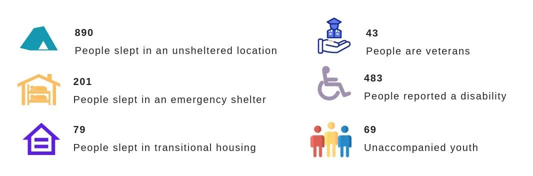 The 2025 Point in Time survey indicated there are 1,170 people experiencing homelessness in Tulare County. Of the 1,170 homeless individuals in Tulare County, 890 people slept in an unsheltered location, 483 have a disability, 43 are US veterans, and 69 were unaccompanied youth.